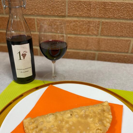 • Ingredienti: RICOTTA (LATTE vaccino, caglio, limone),MASCARPONE,  mortadella, farina integrale di antico GRANO, strutto,PISTACCHI, UOVA, lievito di birra.
