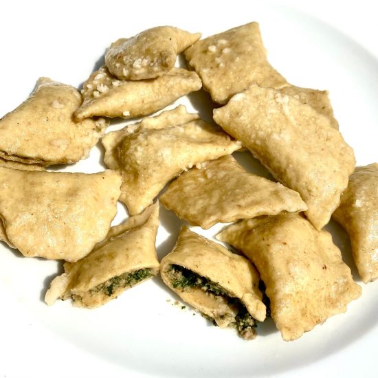 Ingredienti: farina integrale di antico GRANO, BURRO (23,7 %), UOVA, MASCARPONE (LATTE, caglio, limone), NOCI (6 %), PARMIGIANO REGGIANO (LATTE, caglio, sale), scorza di limone, salvia (0,2 %).